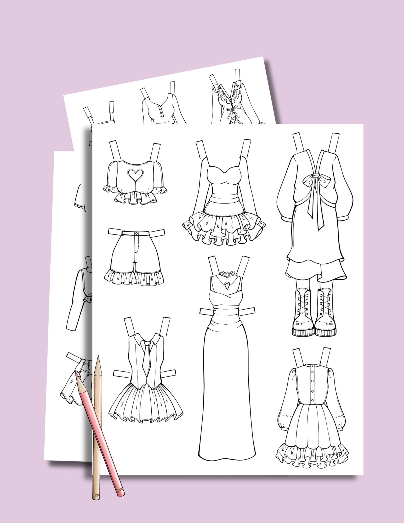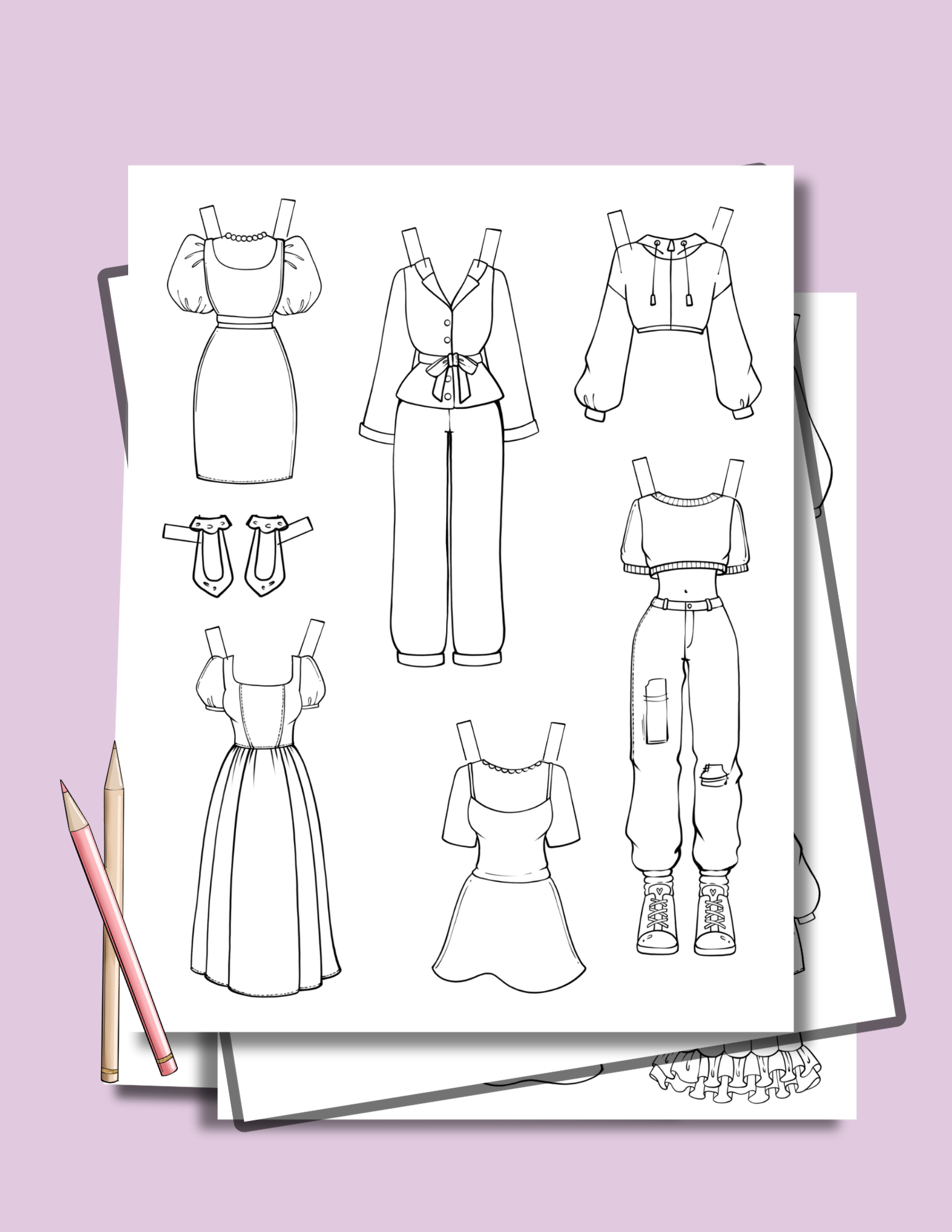 Sofi – PDF Coloring Pages | Paper Doll with Outfits to Print & Color